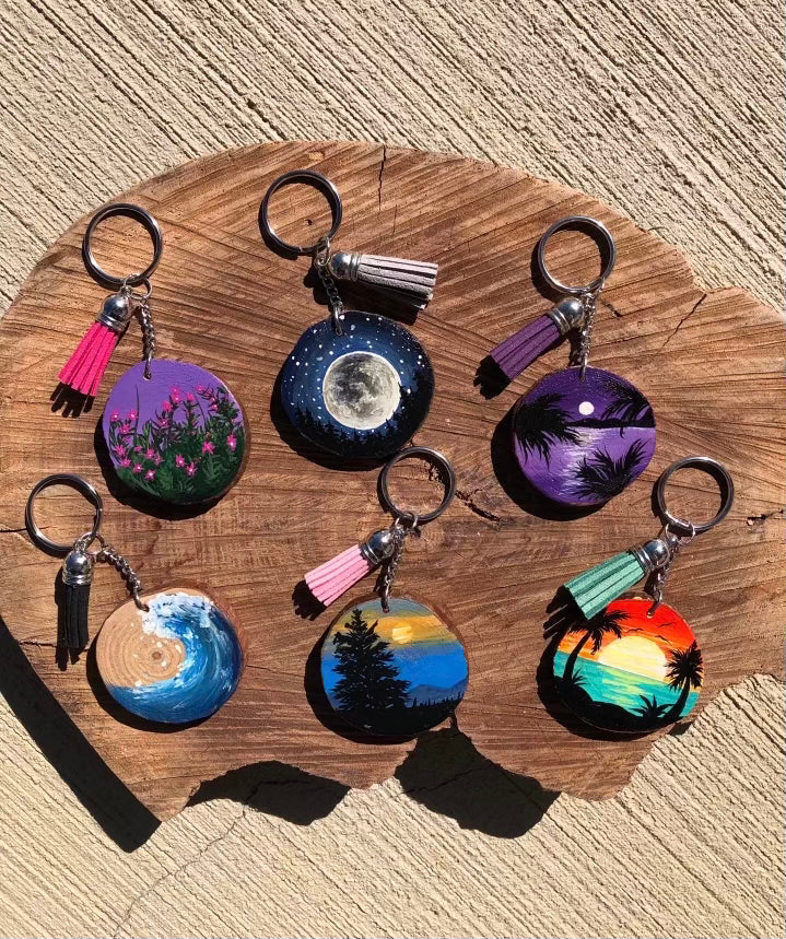 These keychains are hand painted, original designs. Each one is completely unique from the next! Find your favorite now for only $12!